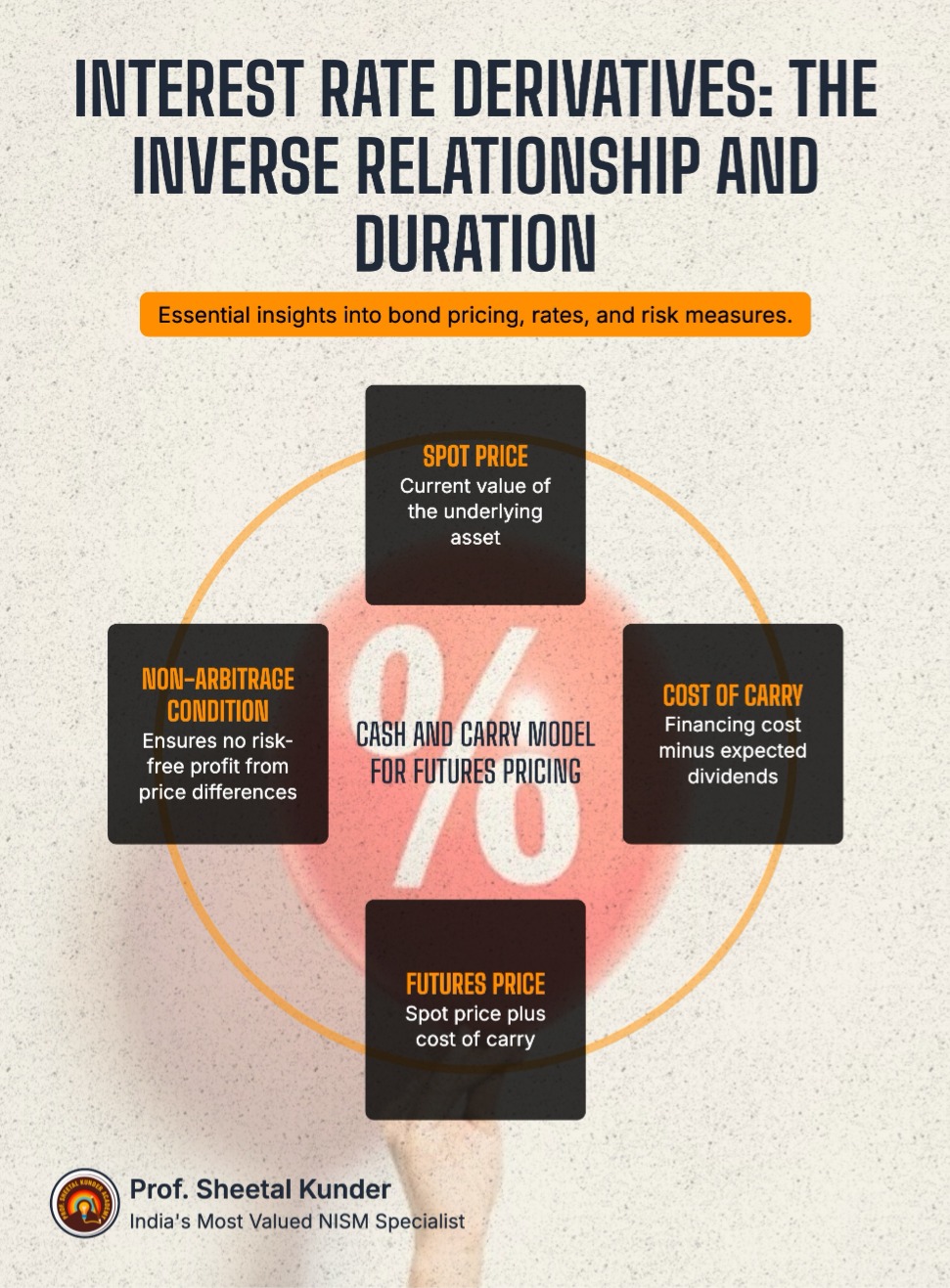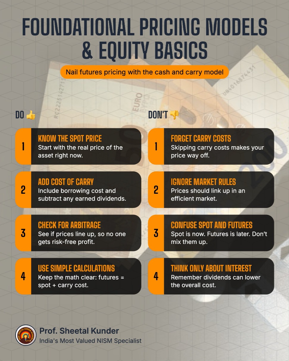 A primary focus of the equity segment is the "Cash and Carry Model" for futures pricing, also known as the non-arbitrage model. This model assumes that in an efficient market, the price of a futures contract equals the spot price plus the "cost of carry"—the financing cost of holding the underlying asset until the delivery date. For financial assets, the cost of carry primarily involves the interest paid to fund the purchase, minus any dividends received during the holding period.