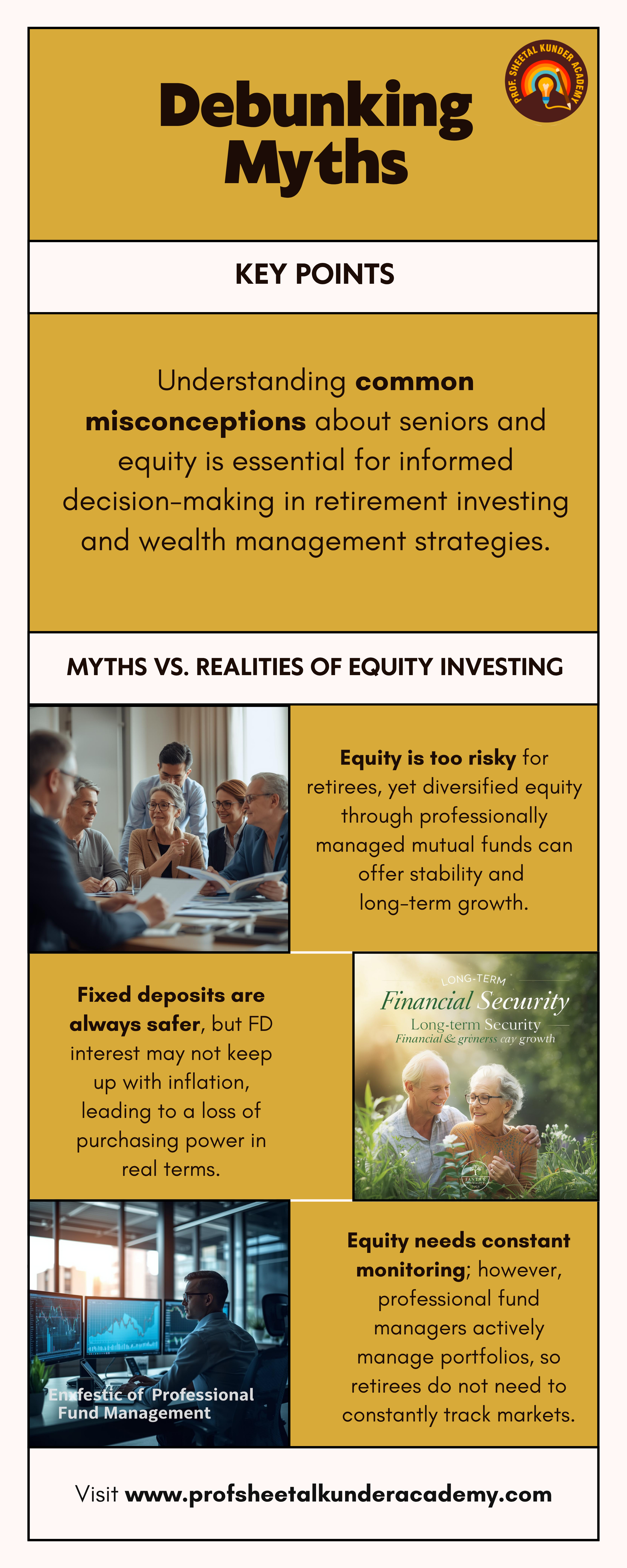 | “Equity is too risky for retirees.” | Diversified equity via mutual funds can offer stability and long-term growth. |