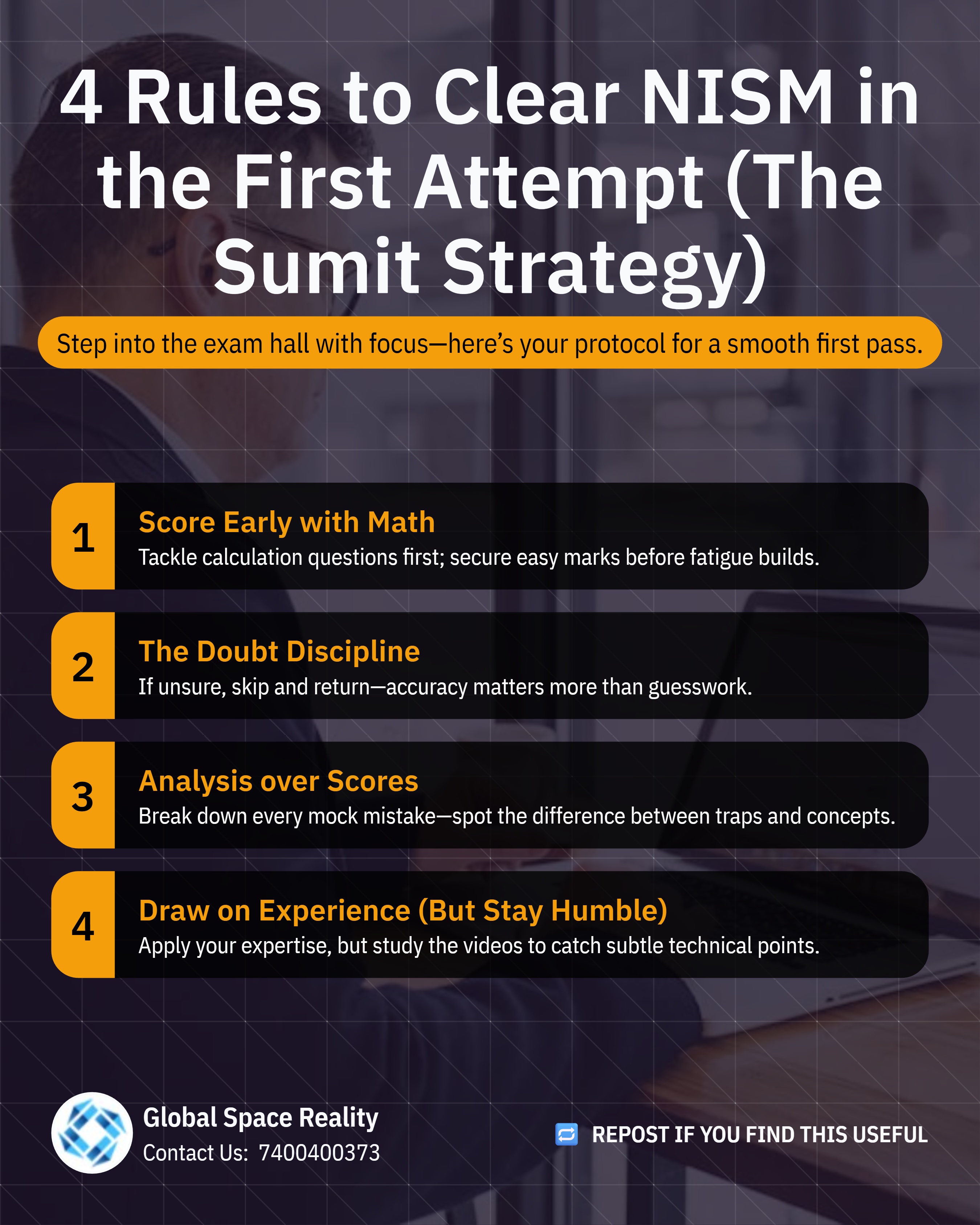 Sumit warns that NISM is not an "easy" exam. The questions are often confusing and designed to test your depth of understanding. His strategy for the exam hall was simple: